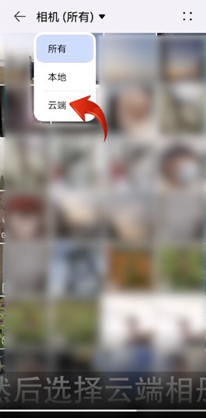 3.点击左上角三角符号然后选择云端相册。