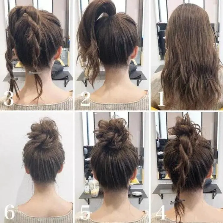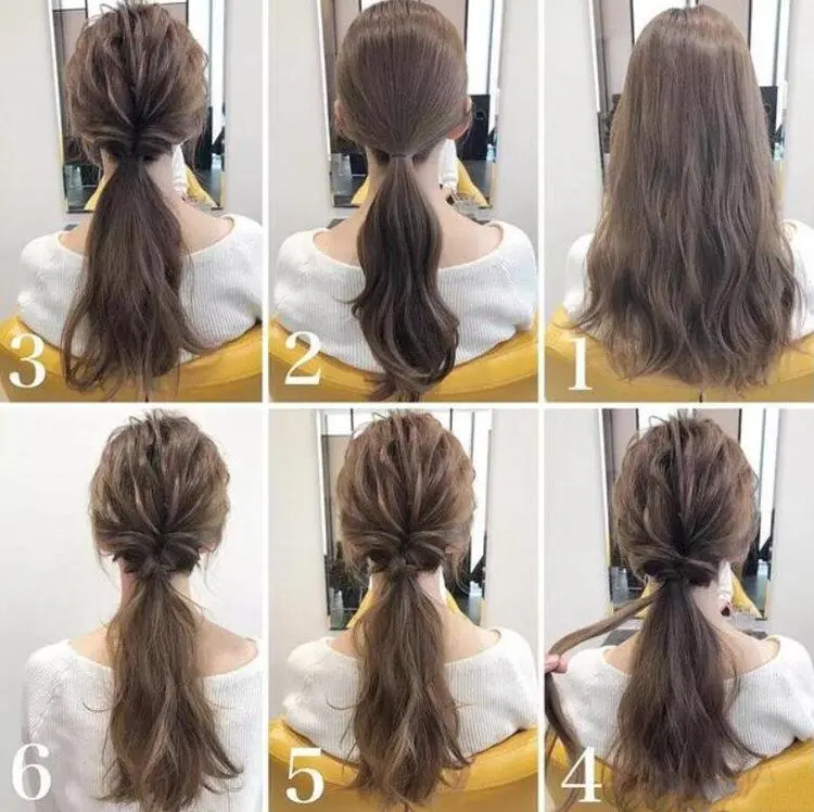改良低马尾,扎一个低马尾,发顶的头发用手弄出纹理感(可以用发蜡辅助),然后在发尾上掏一个洞,把头发伸进洞里形成翻转效果。再用几缕头发把皮筋盖住,这款质感低马尾就搞定了