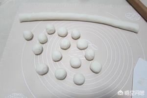 6,揉好的面团搓成长条,分割成17g/个,然后搓成圆球状。
