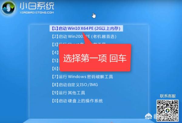 13、进入PE选择界面,使用上下方向键,选择第一项,点击回车。