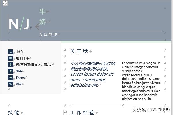 3、直接点击自己喜欢的模板下载后,word文档中就会自动出现了个人简历模板,就可以按照自己的信息进行简历编辑,如下图所示: