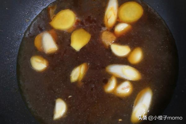 3、捞出黄花鱼,放入葱姜蒜煸炒一下,大约一分钟后倒入清水,放入少许生抽、老抽、糖、醋、盐,还有料酒。