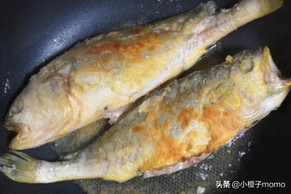2、锅里放油,六成热放入黄花鱼,煎到两面金黄色即可。