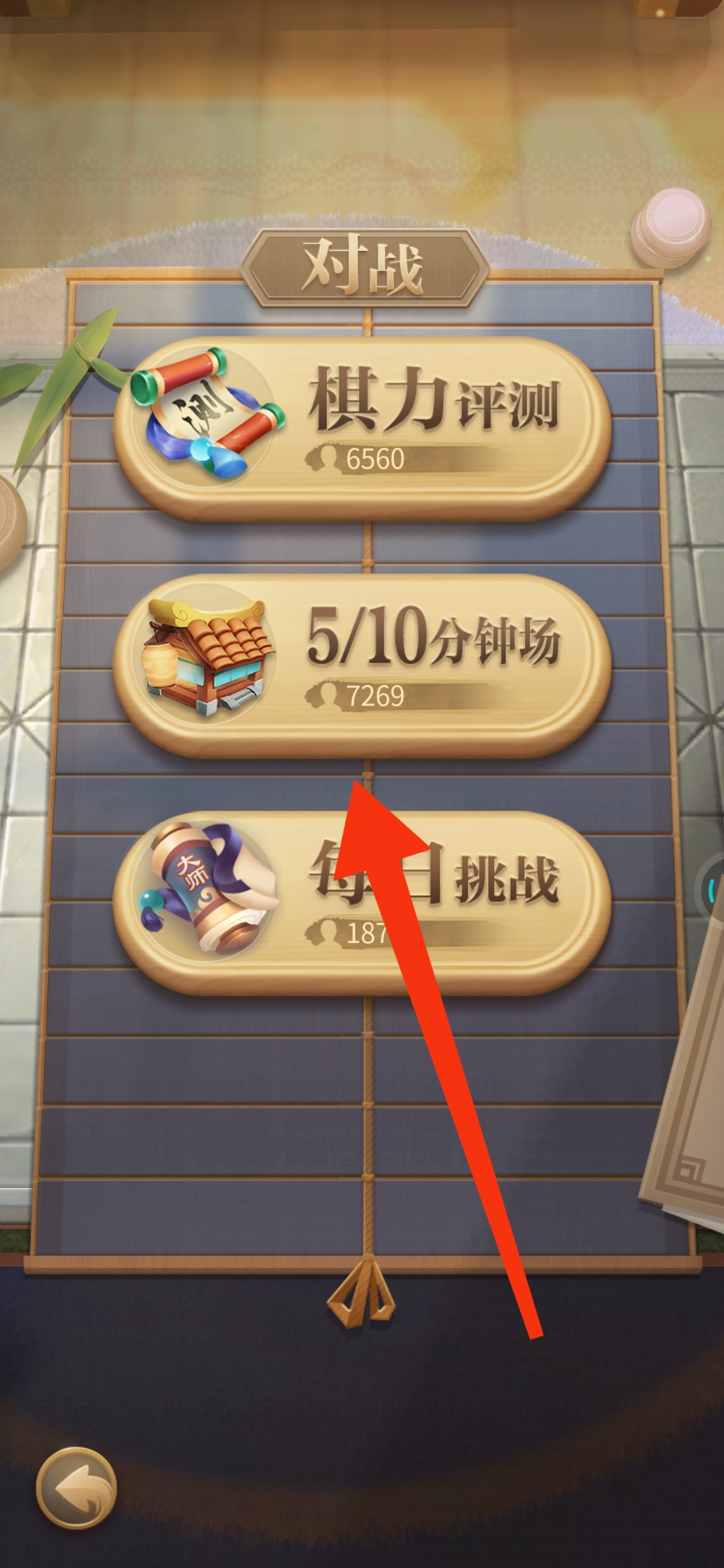 在对战页面,点击“5/10分钟场”