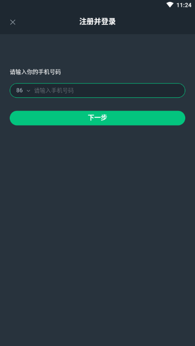 2、点击之后即可进入账号注册界面,在账号注册界面输入玩家的手机号码,点击下一步获取验证码,之后将获取的验证码填写即可成功注册;