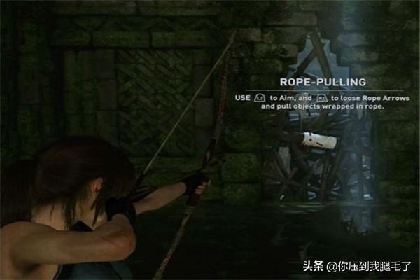 绳索箭矢《古墓丽影:暗影》继承了《古墓丽影:崛起》的技能,玩家直接就可以使用。在遇到有白色线绳捆绑的木桩或木梁,使用弓箭瞄准线绳位置射击,即可使用绳索箭矢。使用绳索箭矢有两种情况:一种是用来打开被封堵的大门,如下图: