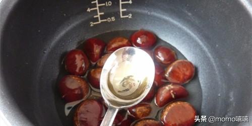 秋天了,糖炒栗子满街漂香,我不敢买,在家就用个电饭锅来搞定这个时令美食;栗子含有丰富的维生素C,能够维持牙齿、骨骼、血管肌肉的正常功用,可以预防和治疗骨质疏松,腰腿酸软,筋骨疼痛、乏力等,强筋健骨,延缓衰老,是一种保健果品。