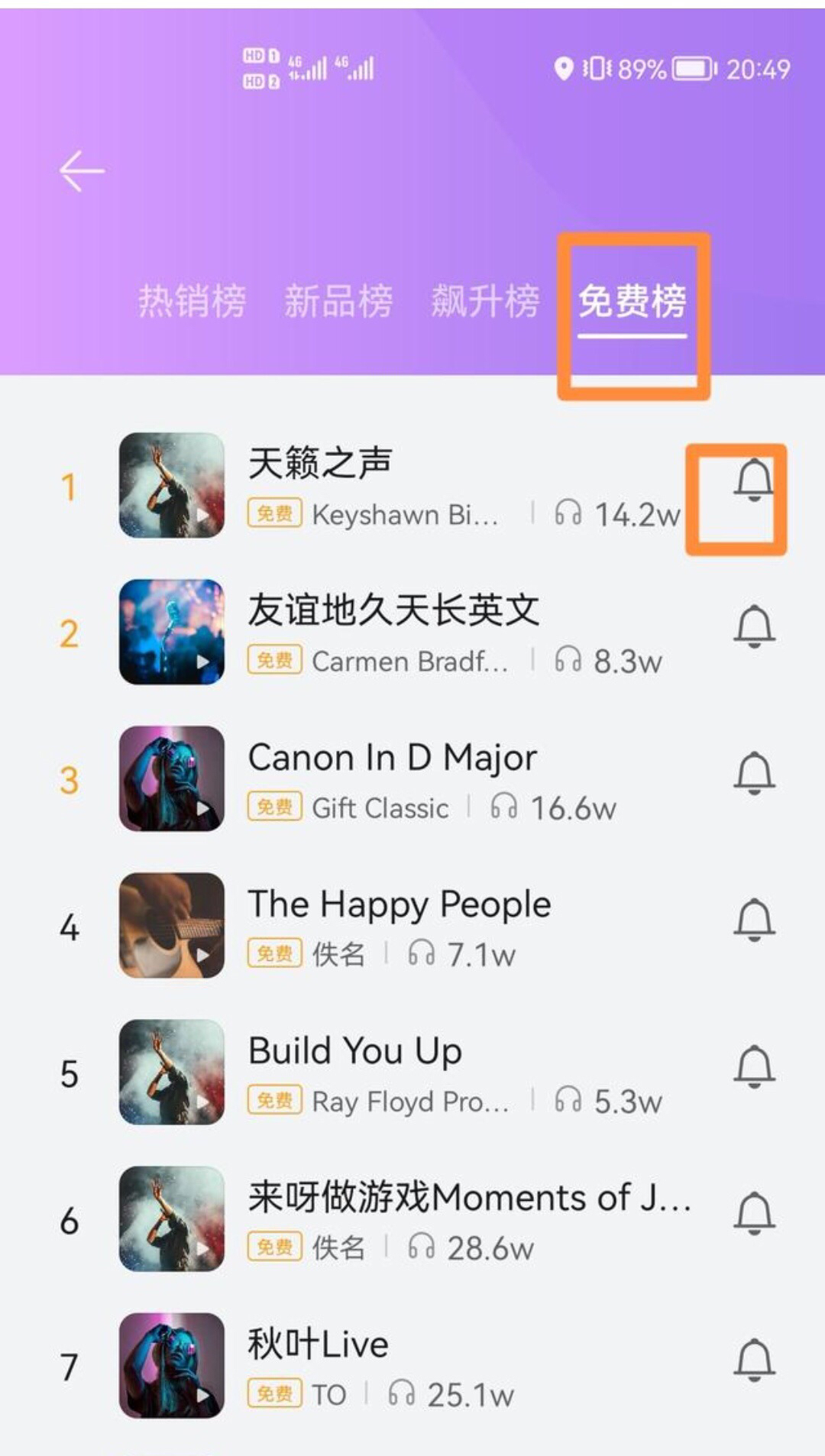 选择免费榜,并点击铃声后面的??图标即可下载。