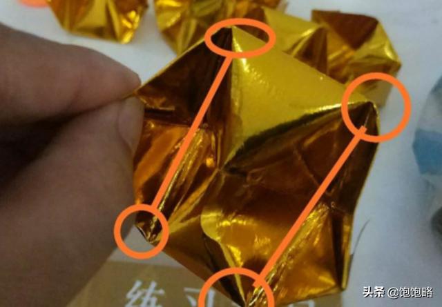 6.两只手轻轻地拉动每个角部根部的两侧,以使金元宝的中间饱满地突出。
